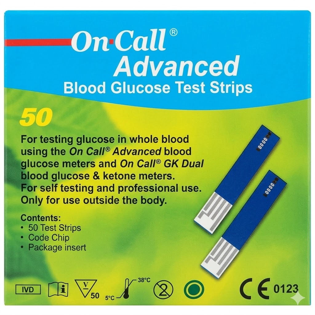 On-Call Advanced Şeker Ölçüm Stripi. Kandaki glukoz seviyesini en yüksek hassasiyetle izlemek için geliştirilmiş test çubukları; saniyeler içinde laboratuvar kalitesinde sonuç veren akıllı sensör yapısı, parmak delme işlemini konforlu kılan düşük kan gereksinimi ve çoklu cihaz uyumuyla diyabet yönetiminde güvenilir ve esnek bir yardımcı.