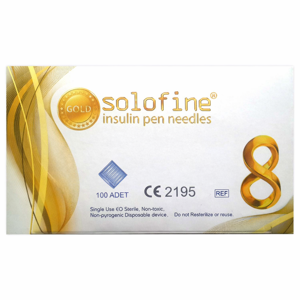 Solofine Gold İğne Ucu 8mm 31G. İdeal uygulama derinliği ve emilim güvenliği arayan kalem kullanıcıları için tasarlanmış yüksek konforlu profesyonel uç; acıyı minimize eden 31G ince yapı ve güvenli subkutan iletim sağlayan 8 mm uygulama derinliğiyle her türlü insülin kalemiyle sızdırmaz uyum sağlayan steril, tek kullanımlık profesyonel kalem iğnesi.